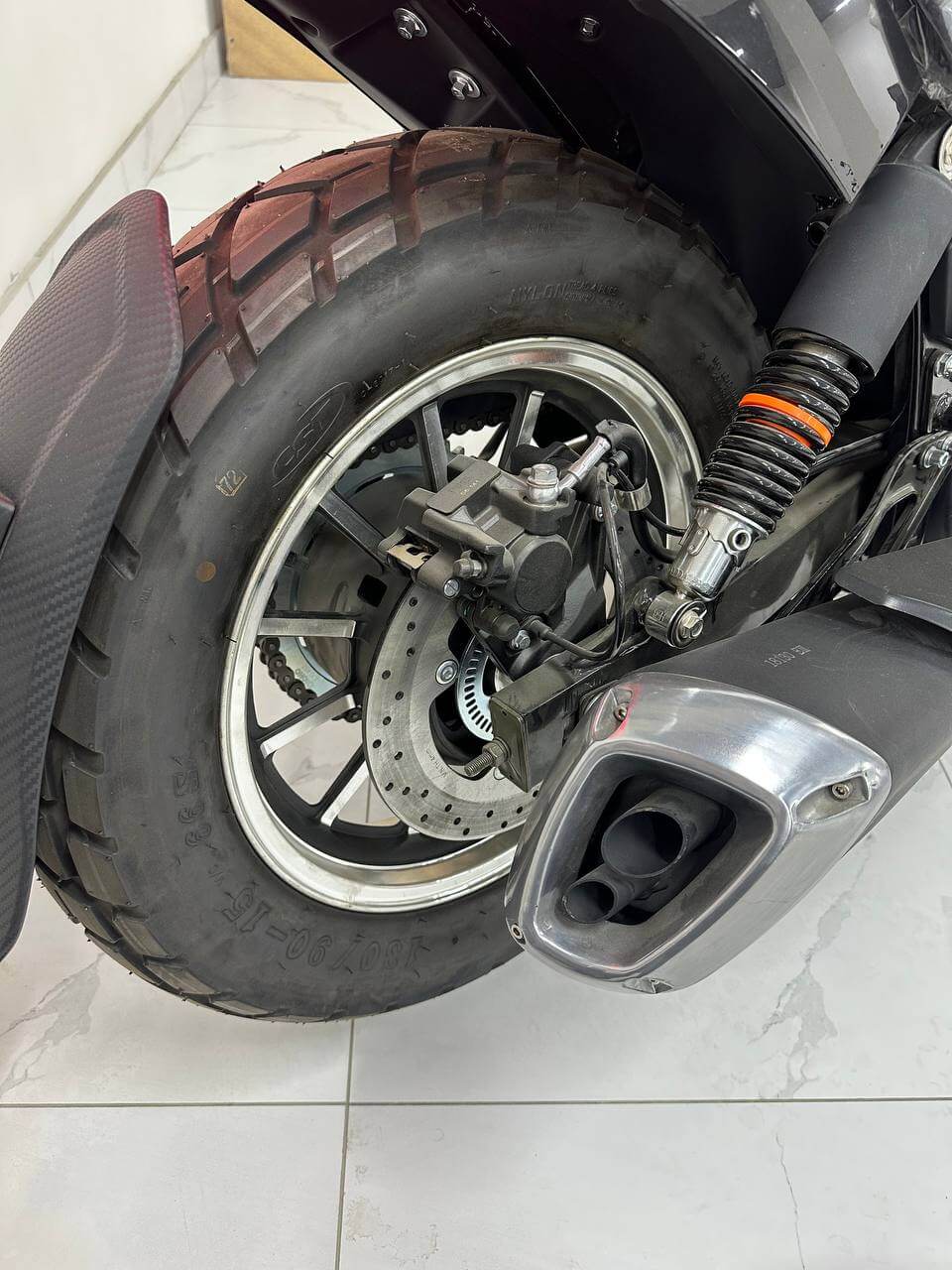 Ходовая часть также на уровне: дисковые тормоза спереди и сзади, прочная колёсная база и клиренс в 160 мм позволяют чувствовать себя комфортно как в городе, так и за его пределами. При весе в 185 кг и высоте по седлу всего 690 мм управлять мотоциклом удобно даже новичку.